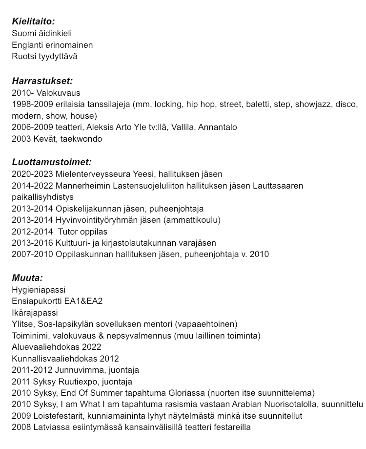 Ansioluettelostani löytyy vielä tarkemmat tiedot, cv alapuolella.